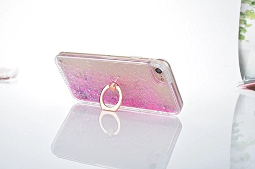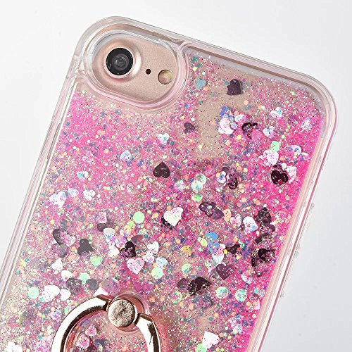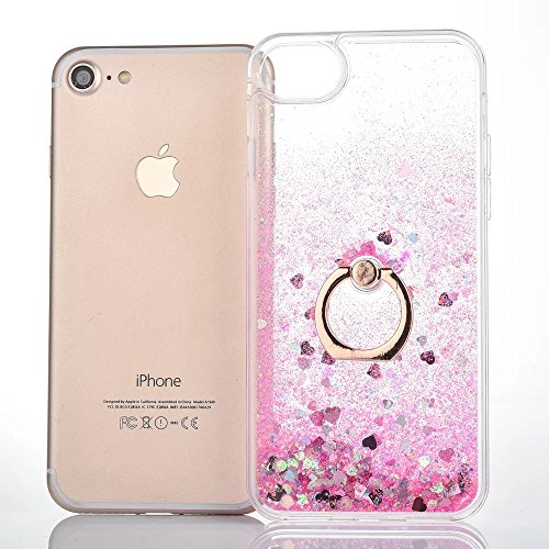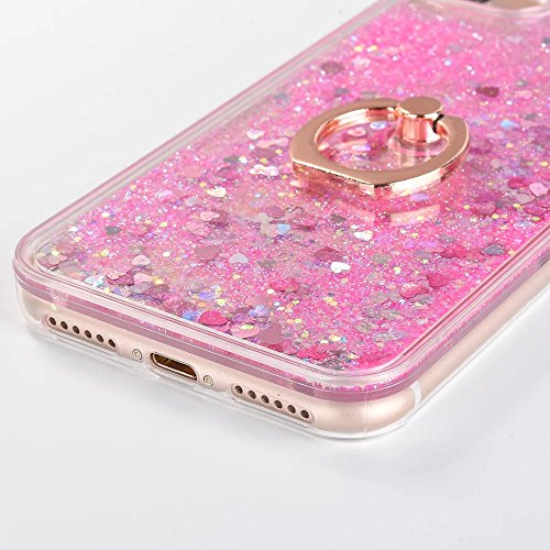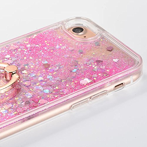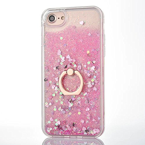 iphone 7 Case Quicksand Liquid - JAZ Finger Ring Stand Ultra Thin Hard PC Back Soft TPU Bumper Transparent Plastic Case Floating Luxury Bling Glitter Sparkle Heart Case for iPhone7 (Heart Pink)
