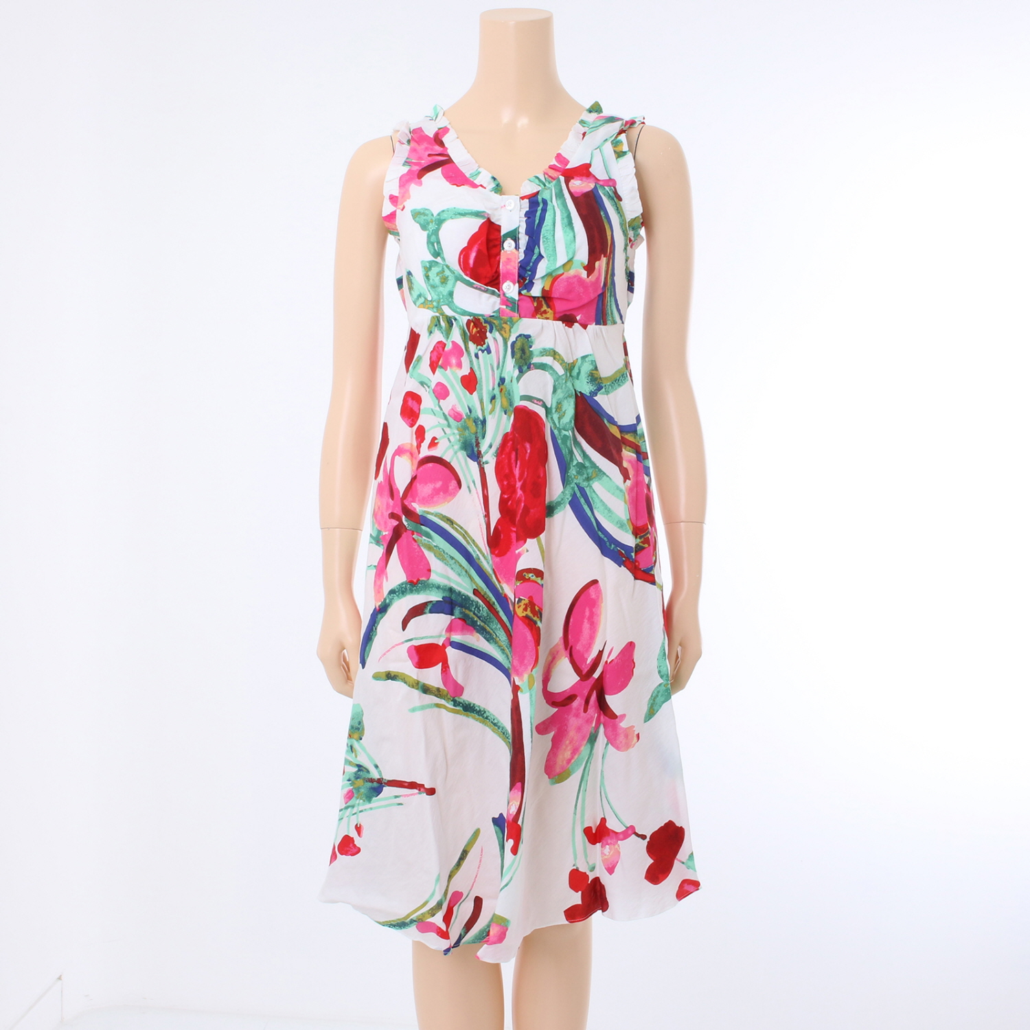 흰바탕에 붉은 꽃프린트로 화사하고