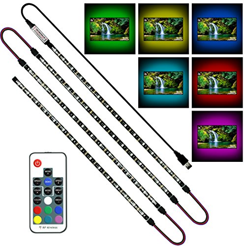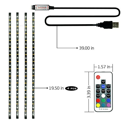 - Package Content: 4x50cm RGB LED TV backlight strips; 3x20cm 4 PIN connection cable; 1x100cm LED controller USB cable; 17 Key RF remote; 7x4 PIN header; User manual.
