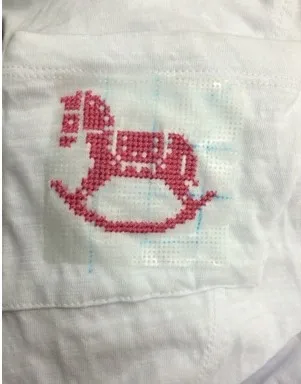 The 14-count Soluble Canvas is used in exactly the same way as Aida when stitching. Choose a design, tack the canvas to the item or material and cross stitch as usual. Place the finished design in a bowl of hot water and the canvas disappears leaving you with a customized unique piece of clothing or home décor item!