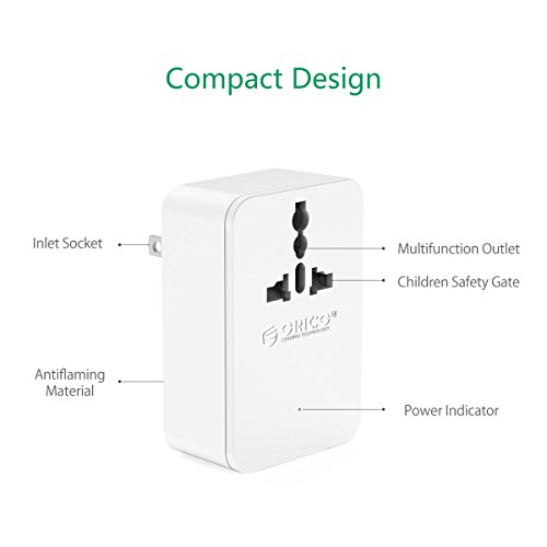ORICO Universal Power Plug Travel Converting Adapter with 20W 4 USB Charging Ports Power Strip