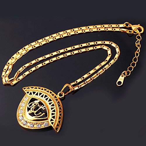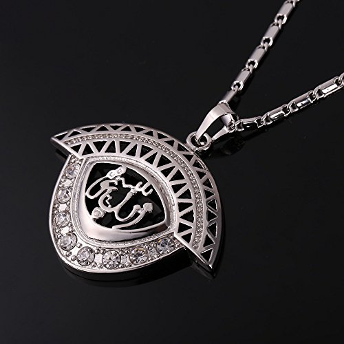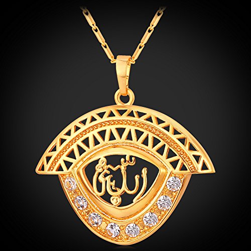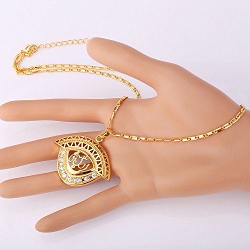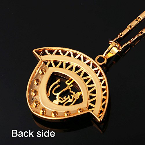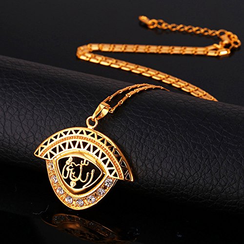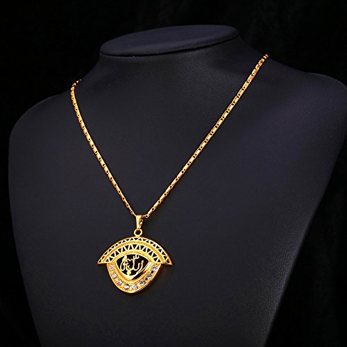 -. Title : Islamic Eye Shaped Allah Pendant 18K Gold Plated Link Chain Rhinestone Necklace