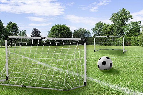 -. Feature : Quick shifts between running, walking and sP.R.Inting are great aerobic exercise / Playing soccer develops coordination and motor skills and promotes an active lifestyle / Portable and easy to assemble goals mean a soccer field is never far away / 6" inflatable ball and pump included / Goals are approx. 4 feet wide and 2 feet tall