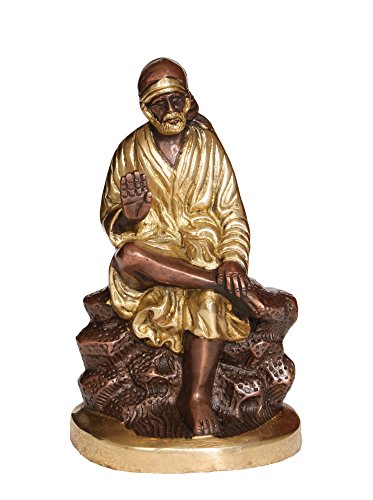 Shirdi Sai Baba in Brown and Golden Hues - Brass Statue