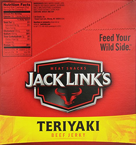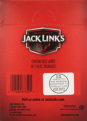 Jack Link's Meat Snacks Beef Jerky, Teriyaki, 1.25 Ounce (Pack of 10)