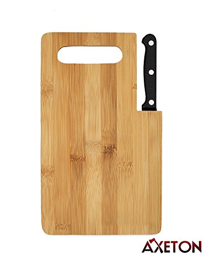 - KITCHEN EFFECTIVENESS TO THE FULLEST: Axeton bamboo cutting board is designed with a built-in knife set to give full effectiveness and comfort for your kitchen need! Whether it is to cut vegetables, fruit, meat, or even cheese!
