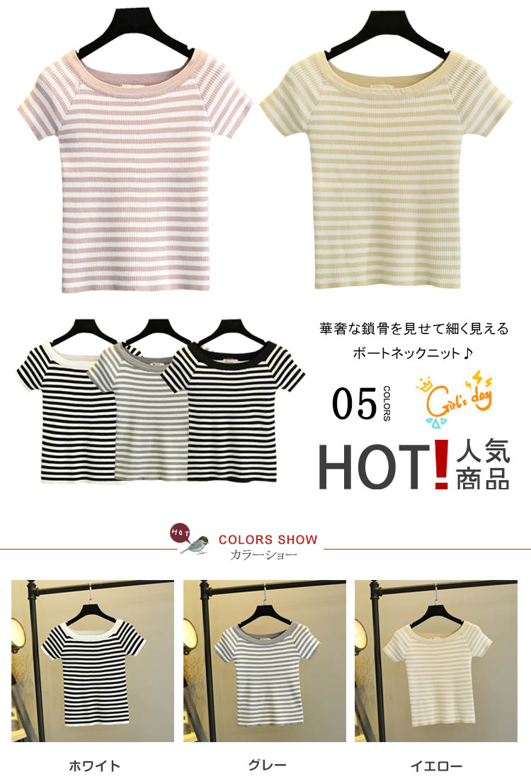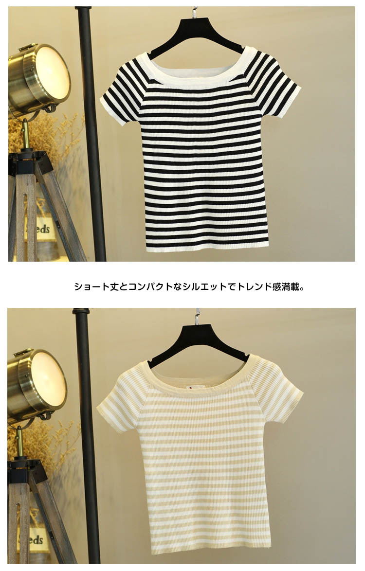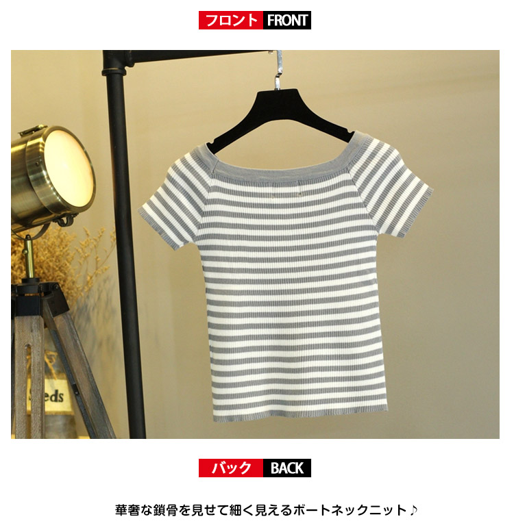 | 華奢な鎖骨を見せて細く見えるボートネックニット♪ショート丈とコンパクトなシルエットでトレンド感満載。華奢なデコルテをアピールしながら、すっきりとした女性らしさを与えます。シンプルなデザインでスタイリングにも取り入れやすく、今年はフレアスカートなどのボリュームボトムスとの合わせがオススメです。 | |