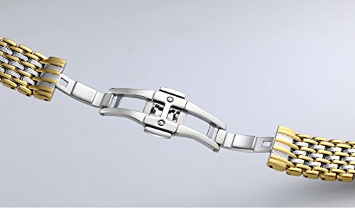 -. Feature : Band width: 18mm Buckle width: 18mm Thickness: 2.4mm The maximum length is 178(7"inch) and it comes with 8 removable links to adjust the length to suit your wrist size. Please make sure to measure the lug width of your watch before ordering. / Made from two-tone stainless steel, the watchband is subtly polished making the strap very comfortable to wear. Crafted with high quality 316L stainless steel, for greater resistance to corrosion, torsion or sweat. We also use the best PVD coating technology to ensure the long lasting of the color. / Crafted on specialized German machines, the smooth stainless steel band wraps fluidly around your wrist. Professionally made and attention to detail has been made to the level of finish to the machined links, offering an excellent wearing experience. All transition line angles are finally rounded and polished carefully at low speed. / It's specially designed and made for your luxury watches. It can be applied to watches with standard straight lug ends, such as Tissot, Longines, Wenger, , , Mido, Omega, , Tudor, Movado, Rado, Hamilton, Titoni, Certina, Swiss Military, MontBlanc, , Jaeger, Invicta, Zenith, Orgival, Ranceas, Timex, etc.. / It comes with a deployment clasp with double push button to give you quick release and removal of the band. The watch wristband is nicely packed with a free set of matching sP.R.Ing bars included.