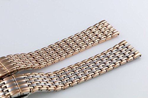 -. Title : 18mm Women's Luxury Unique Elegant Two Tone Silver/Rose Gold Watch Bands Replacements Solid 316L Stainless Steel Pleated Pattern