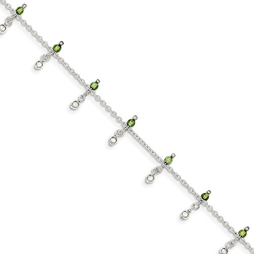 -. Title : 925 Sterling Silver Peridot Bead Ankle Bracelet -9" (9in x 1mm)