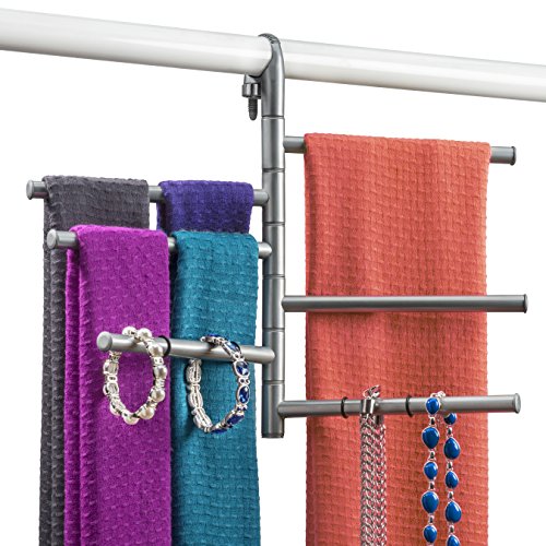 Lynk Hanging Pivoting Scarf Rack and Accessory Holder - Closet Hanger Organizer Rack - Platinum