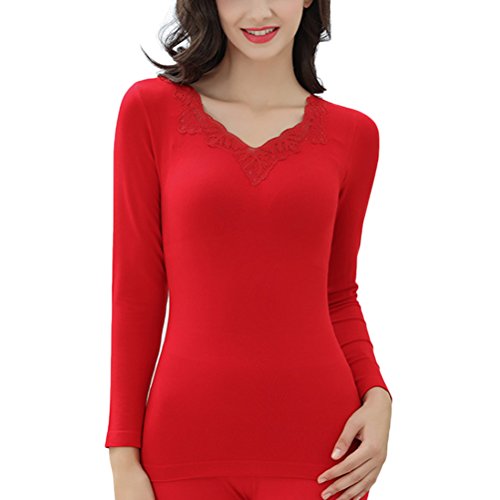 -. Feature : Breathable, soft and comfortable fabric, lightweight, non-bulky. / Great to wear for sleeping or add an extra layer of warmth under your clothes. Advise to choose proper thick thermal underwear tops if you are going to be in a minus temperatures. / Stretchy fabric for a snug-fit, minimizing heat loss, let your winter in the cold can become slim. / This thermal underwear tops will be a great gift for Ladies. / It is warm for autumn and winter life.