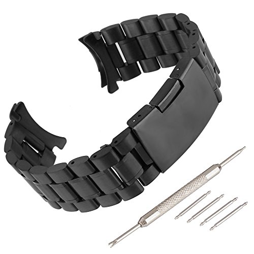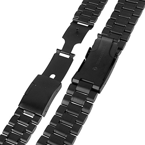 Beauty7 Schwarz Edelstahl Uhrenarmband Uhrenarmbander mit Faltschliesse Metall Uhr Armband mit 4 STK Federstege und Federstift 16mm 18mm 20mm 22mm 24mm