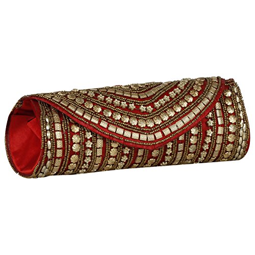 Beaded Sizzling Rajasthani Style Hand-Cum-Wedding Clutch for Women & Girls - Maroon Color
