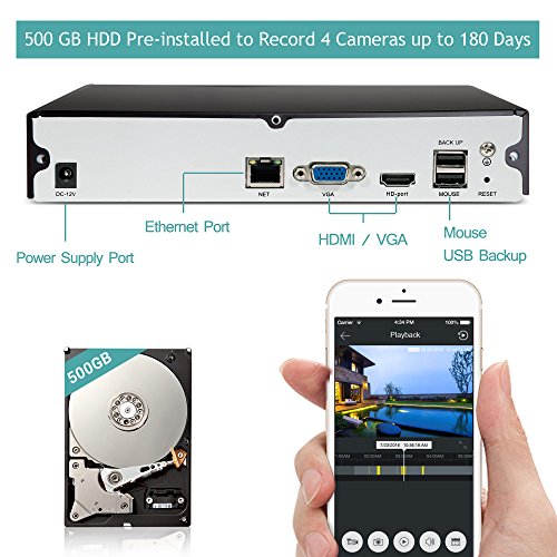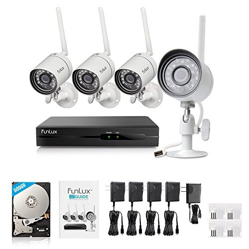 Package Includes: *(1) 4CH Network Security NVR *(1) 500GB Hard Drive Pre-installed in the NVR *(4) 720p HD Wireless Outdoor Security Camera *(4) Power Supply for Cameras *(1) Quick Guide *(1) After-sales Service: 60-day return and refund, 2-year US warranty, life time US tech-support, 24/7 live chat in Funlux app. Cloud service available soon.