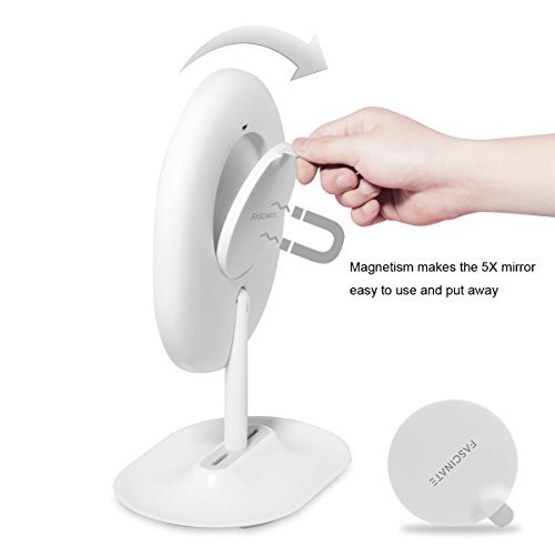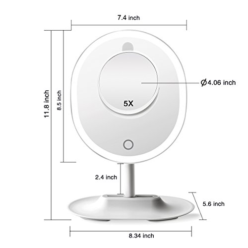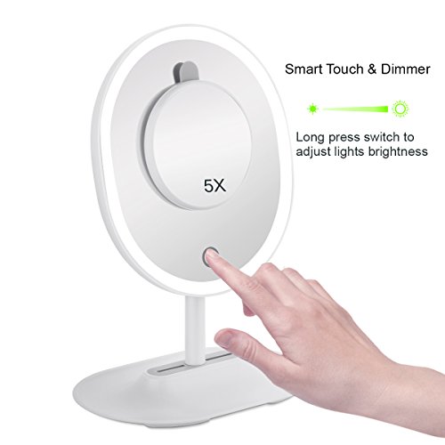 FASCINATE Lighted Vanity Mirror Oval Shape USB Rechargeable Touch Screen Dimming Makeup Mirror with 5X Magnifying Spot Mirror (White)