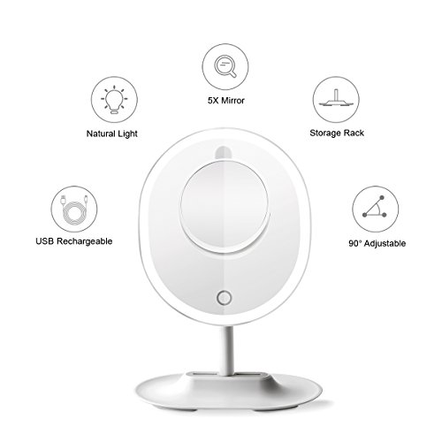 Natural Light - Built-in smart dimming lighted makeup mirror allow you to make up in the dark or poorly lit areas. LED lights on/off controlled by the touch sensor switch let your makeup more convenient.