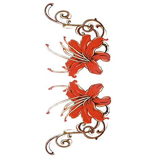 TAFLY Non Toxic Fashionable and Red Flowers Realistic Temporary Tattoo Stickers for Women 5 Sheets
