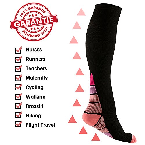 Features ? Graduated Compression, 20-30mmHg ? Superior grade circular knit structure ? Made of moisture wicking material ? Cushioned toe and heel support ? Stylish, 2 size range to choose ? Won't slip down legs ? Great for anyone on their feet all day ? Ideal for daily use and outdoor activities Benefits: ? Stimulate blood flow and improve blood circulation ? Better oxygen delivery to your muscles ? Reduce swelling and fatigue from prolonged sitting or standing ? Reduce feelings of heaviness and tiredness in the leg ? Reduce risk of deep vein thrombosis or blood clots ? Help speed up recovery time after surgery ? Help maintain healthy, energized legs People with the following symptoms may benefit from Reehut Compression Socks: ? Tired, aching, fatigued, and swollen feet ? Shin splints, and calf muscle pull ? Plantar fasciitis, and achilles tendonitis ? Edema, lymphedema, and venous insufficiencies ? Post-surgical recovery, and athletic recovery ? DVT, spider veins, and varicose veins Common occupations that may benefit from Reehut Compression Socks: ? Nurses and doctors ? Masseurs, cosmetologists, and stylists ? Frequent travelers or anyone taking a long plane flight ? Teachers, Warehouse, packing, or delivery occupations ? People with jobs that require prolonged standing or sitting Reehut Compression Socks - Energizes and Protect Your Legs! 0 |