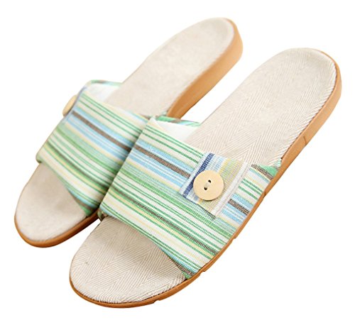 (Blubi)/Women's/Slippers/DIRECT FROM USA/Blubi Women's Summer Button Flax House Slippers Comfortable Ladies Slippers Open Toe Slippers