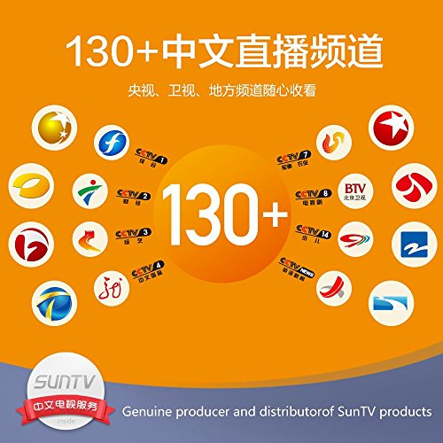 -. Feature : We are the genuine producer and distributor of SunTV products,purchase from other sellers may cause risks that we do not undertake and it may not be our standard and their customer service is different than ours. / With up to 1080p High-definition videos, Quad Core processor, stable Internet connectivity, heat dissipation and low power usage.Faster and smoother. / SunTV $99 special package includes SunTV Set Top Box (with Remote Control, HDMI Cable and Wall Power Charger), and 2 year Chinese TV service subscription(CICC and TVB USA certified). / 130+ Chinese live streaming channels directly from Mainland China, including CCTV, Wei-Shi,and local TV channels.7-day playback feature and Unique time zone shift. You can watch 7 days of recorded programming across all the TV channels at anytime you like. / 30 day Refund Policy. SunTV warrants the SunTV set-top box hardware against defects in materials and workmanship under normal use for a period of service (subscription) from the date of purchase. Automatically software updated, free-of-charge.