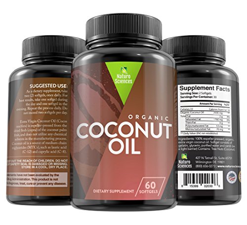 -. Feature : HIGHEST QUALITY, EXTRA VIRGIN COCONUT OIL: The Naturo Sciences extra virgin, organic coconut oil supplement is made in the USA, it is GMP certified and it assures the highest quality and safety standards. The proP.R.Ietary blend of high quality ingredients makes this dietary supplement the best alternative to harmful animal fats that burden your organism. / BOOST YOUR ENERGY AND IMPROVE YOUR GENERAL PERFORMANCE: This pure and effective, organic coconut oil dietary supplement will support a good immune system function while it will also boost your energy levels. As result, you will be feeling more energetic and able to seize the day. / TURBO CHARGE YOUR METABOLISM AND LOSE WEIGHT: If you find losing weight difficult, you should probably try this coconut oil supplement now! It is well known for stimulating the body's metabolism, allowing you to make your diet's results visible in a shorter period of time. / IMPRESS WITH THE NEW YOU: This premium quality, extra virgin coconut oil supplement will help you take care of your appearance as well. Apart from turning your hair strong, shiny and silky smooth, it will facilitate hair growth and it will also nourish your brittle nails. Get ready to have everyone staring at the new, rejuvenated you. / 100% RISK FREE PURCHASE: Keeping you satisfied and providing you with the friendliest customer service is our number one goal. This is why this organic coconut oil dietary supplement is backed by a 60 days money back guarantee. In case you are not 100% happy with your purchase, we will give you all your money back.