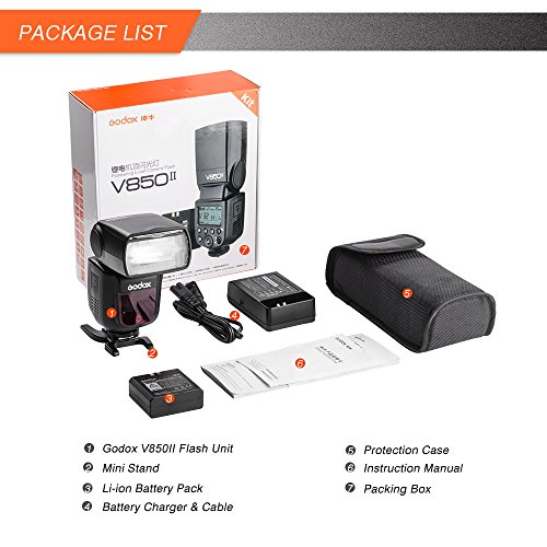 Upgraded from V850, V850II guarantees better light shooting experience with built-in Godox 2.4G wireless X system. With Master and Slave wireless flash system, V850II fits all DSLR camera brands e.g. Canon, Nikon, Pentax, Olympas, etc.