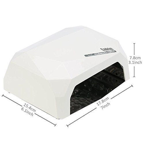 Features: Suitable for nail salon, nail art academy / college, personal use, wholesale, etc Dries quickly all UV and LED nail gel polishes! Fast curing of UV gels from one hand or 5 toes at a time. Larger opening to dry all 5 fingernails or tongues at the same time! Compact design for comfort, easy to carry and store. For maximum flexibility, the device can be started automatically due to an infrared sensor. Diamond-shaped and sparkling case design make it more fashionable. Light weight, small size, easy operation, fast and flexible switch, long life makes it so popular all over the world.