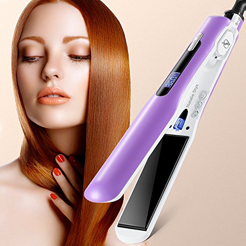 Natalie Styx Flat Iron Professional Hair Straightener Tourmaline Ceramic 450F Hair Iron with LCD Display, Dual Voltage, Salon Clips, Travel Bag Gift for lady,...
