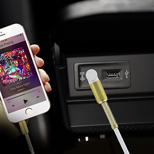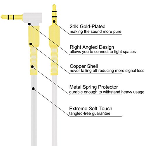 Rancco 2 PC 3.5mm Male to Male Audio Cable Auxiliary Cable Cord, 3.3 Ft Right Angle Gold-Plated Hi-Fi Stereo Cable w/ Protector for Car Stereos, iPhone, Speaker, Headphones etc(White)