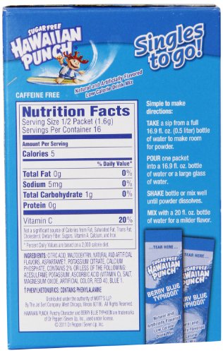 Hawaiian Punch Singles To Go Powder Packets, Water Drink Mix, Berry Blue Typhoon, 96 Single Servings (Pack of 12)