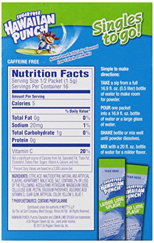 Hawaiian Punch Singles To Go Powder Packets, Water Drink Mix, Lemon Lime Splash, 96 Single Servings (Pack of 12)