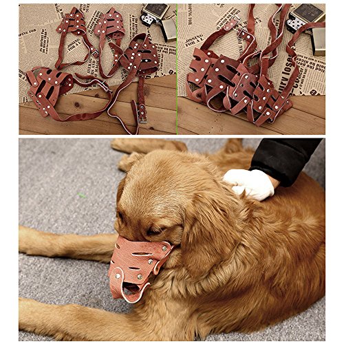 WHY A DOG NEEDS A MUZZLE? Dogs wear muzzles for many reasons including inappropriate or aggressive behavior towards other dogs or people, and to stop them from eating leftovers in the street. Whatever the reason, in our mission, it is important that the dog is happy and comfortable with a muzzle on so that the master and the dog can enjoy their time together happily. FINE QUALITY LEATHER- DURABLE BREATHABLE ADJUSTABLE This is a secure comfortable training dog muzzle with 5 adjustable straps.With the hope of providing high quality products for pet lovers, we recommend this Dog Leather Muzzle to you. This muzzle is great for top handlers, trainers, and other professionals to work with strong, forceful dogs, and also useful for protection. Where A is circumference and B is length of dog snout. Circumference - measure approximately (small dogs short snout dogs 1/2" below their eyes) (big dogs 1" below their eyes) go all the way around the snout. Length - measure your dog from the inside corner of one eye to the tip of its nose. Please visit our shop for more pet products. Polished hardware. SPECIFICATION Material: Fine Quality Leather and Metal Buckle Package: 1* Pet Muzzle Color: Black, Brown Size: S, M, L, XL SIZE CHART(More details in size map) Size Mouth-tip(in) Mouth-middle(in) Neck(in) S :7.0-8.3 8.7-9.8 11.4-15 M :8.7-9.8 10-11.5 11.5-15 L :10-11.8 13.5-15 16-19.3 Please measure your dog's snout to insure this is the correct muzzle size you need(measure twice before buying). If you have any questions please do not hesitate to contact us. MONEY BACK GUARANTEE In the unlikely event that you are unhappy with our product, 100% LIFETIME WARRANTY - If you don't absolutely love for any reason, simply ship it back. We will immediately refund your entire purchase price or replace it - whr you prefer with zero questions. 0