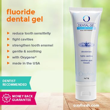 [Product Information]- SOOTHES SENSITIVE GUMS – Oxyfresh Fluoride Dental Gel works to quickly sooth sensitive gums. It’s perfect for new dental implants or after a visit to the dentist.