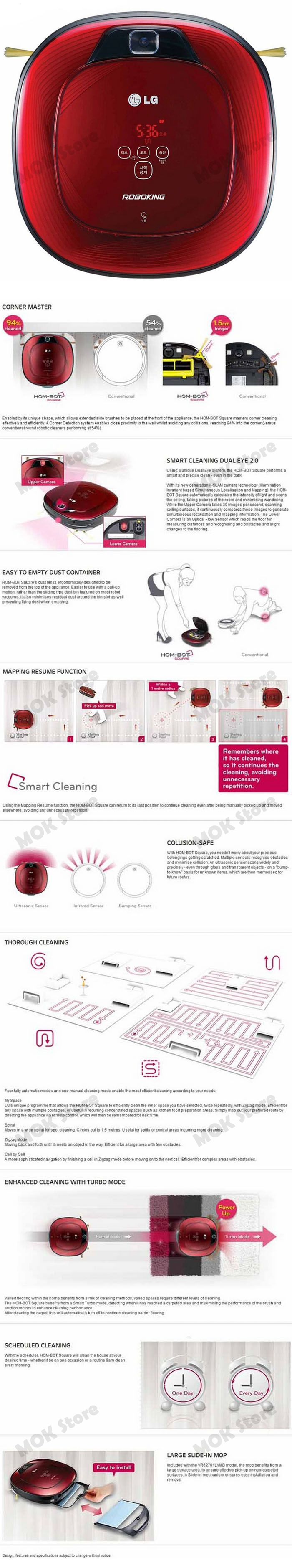-LG Roboking VR 6270 LVM (Red) has an "Auto-turbo" Function