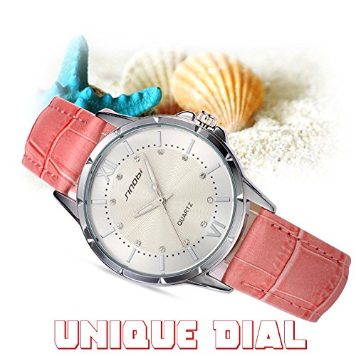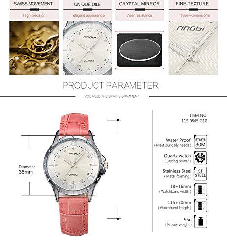 -. Binding : Misc. -. Brand : VIGOROSO -. Feature : PRECISE TIME KEEPING: Precise quartz movement, provide precise and accurate time keeping. / WATERPROOF FOR DAILY USE: Mildly Water Resistant NOTE:Only resistant splash or drip, not suitable for shower, swimming and diving. Too much water contact or usage in extreme Hot or Cold temperature will shorter watch life. / COMFORT: The strap is soft and comfortable and environmental friendly. / FASHION CASUAL DESIGN: Analog display design, leather band with the simplicity of business casual. / BEST PRESENT: The best birthday gift for family or friends. -. Label : VIGOROSO -. Manufacturer : VIGOROSO -. ProductGroup : Sports -. ProductTypeName : SPORTING_GOODS -. Publisher : VIGOROSO -. Studio : VIGOROSO -. Title : VIGOROSO Women Fashion Style Watch Lady Stainless Steel Quartz Analog Leather Wristwatch