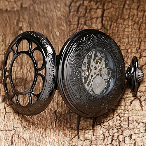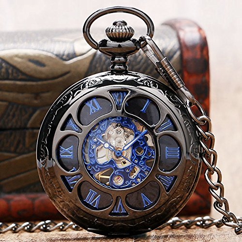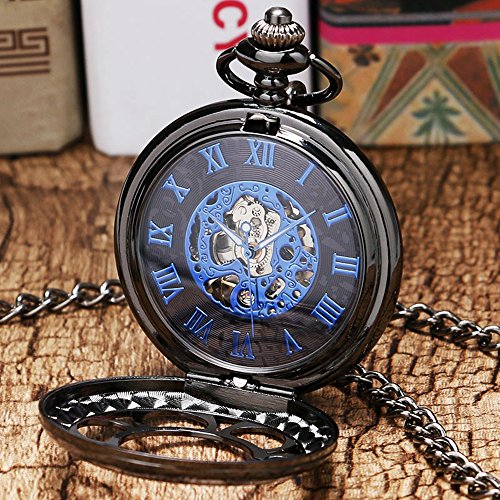 -. Feature : LUXURY DESIGN: Half Hunter case with Classic roman numberal display-Scratch resistant mineral glass blue skeleton dial- Removable chain with hook. / MOVEMENT: Powers with mechanical movement, Please wind up the watch before every usage. Keep away from magnet to avoid making it stop working. / HOW TO WIND THE WATCH:Please wind the mechanical watch by turning the crown clockwise for 15 to 20 complete revolutions every day. Please do not over winding up the watch if you feel the crown is tight. / COME WITH GIFT BAG: Best Valentine day Gift, Superb Christmas Gift, Birthday Gift, Wedding Gift etc. WATERPROOF FOR DAILY USE: Daily use waterproof, not suitable for underwater activities - such as shower, swimming. / CUSTOMER SERVICE: 30 Day money back guarantee for any reason; All watch in our store will enjoy 24 Month warranty.