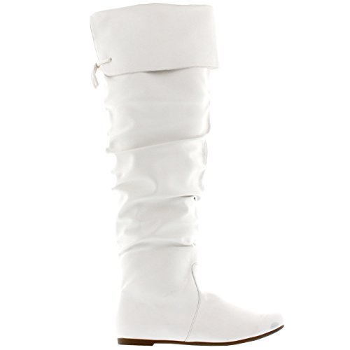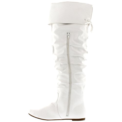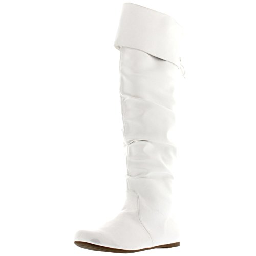 Product DescriptionThese knee high boots feature a lace up back, small block heel, round toe front, fold down cuff, and a zip closure on the inner sides.0