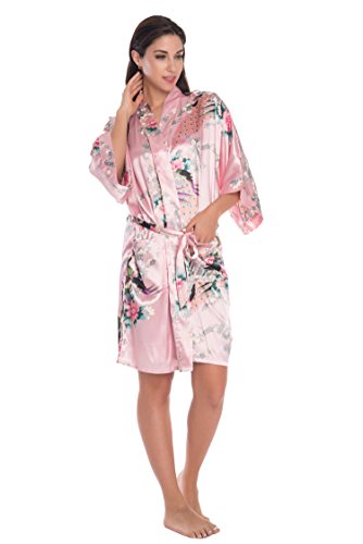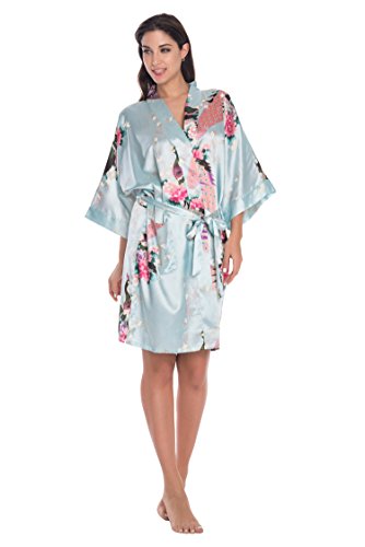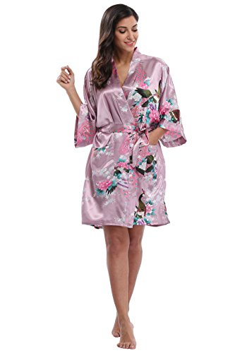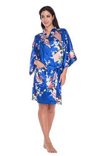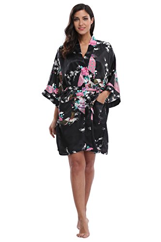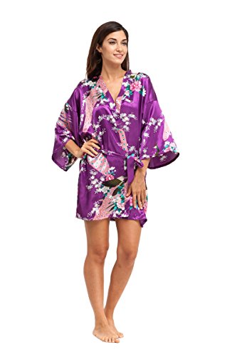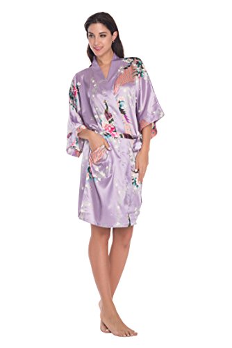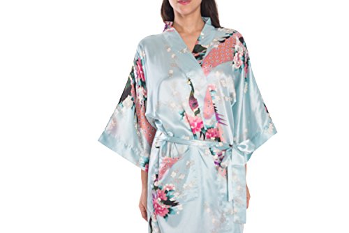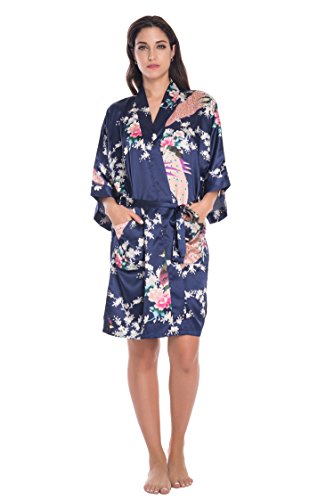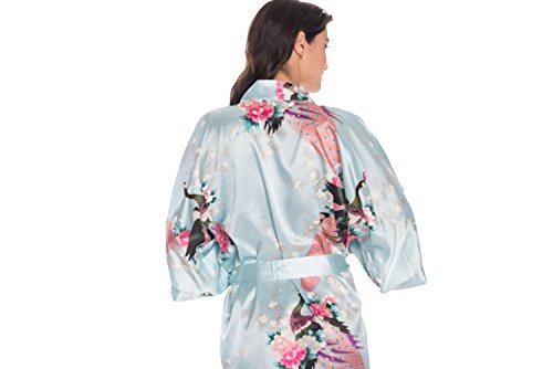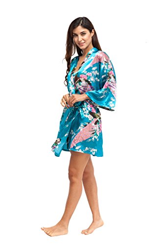 Elegant peacock design kimono robe, available in multiple colors. With 2 side pockets, sash tie closure, belt loops and inside ties.