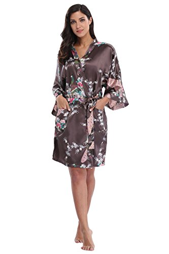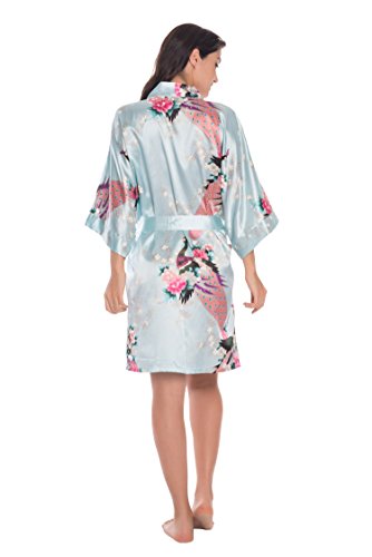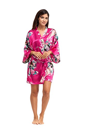 Relax in soft luxury and experience comfort and style with this robe. Be made from Soft Polyester, easy to care for. It can be worn at home as a lounge robe or bathrobe, or as a light wrap jacket on warm days. The lovely peacock & blossoms design is printed throughout the robe and continues in one piece to the kimono sleeves, so you can fully appreciate the beautiful design. Beautiful patterns and two patch pockets make it both stylish and practical.