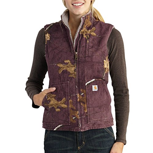 Studio : Carhartt Women's Collection Publisher : Carhartt Women's Collection Binding : Apparel Product Description Blend in in the woods or stand out on the jobsite in this camo vest. Made from 12-ounce, 100 percent cotton duck and offers the real tree xtra camouflage pattern, Sherpa lining, zipper-secured chest map pocket, two lower-front pockets and two interior pockets, drop-tail adds coverage and triple-stitched main seams for durability. It has a back length of 25 3/4 inches. 0