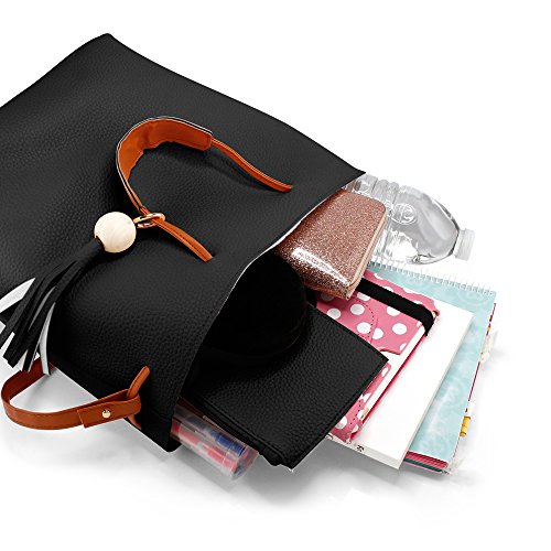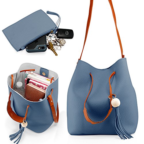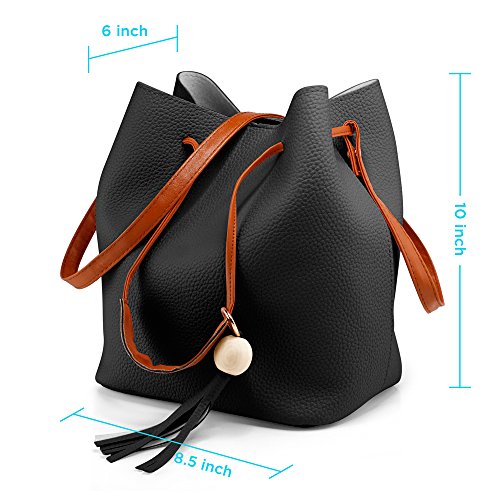 -. Feature : •FASHIONABLE DESIGN WITH PRACTICALITY: Made with high quality PU leather material with stylish tassel decoration and gold-tone metalware. Useful and practical yet stay fashionable for everyday occasions such as casual outdoor activities, shopping, traveling, school, the gym, business, work, etc. / •QUALITY MATERIAL: Made of high quality PU leather material that's light weight and comfortable to carry. / •SPACIOUS COMPARTMENTS: 1 magnetic snap closure large spacious main compartment for essentials; 1 detachable small zipper closure pouch for small accessories. / •MULTI-FUNCTION: Can be used as a bucket style hobo handbag, a shoulder bag, or a cross body messenger bag with detachable shoulder strap. Approx. H10" x L8.5" x D6"; Toe Drop: Approx. 8". / •CUSTOMER SATISFACTION: If you're not 100% satisfied with our handbag, you can return it for a full refund, no questions asked! We take P.R.Ide in our customer service, and we will do whatever it takes to make you happy.