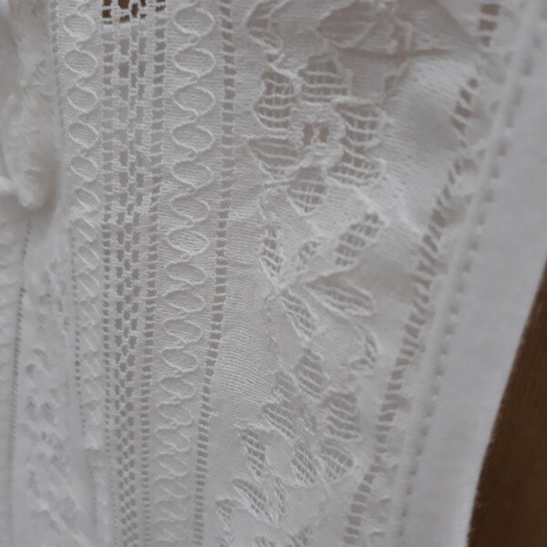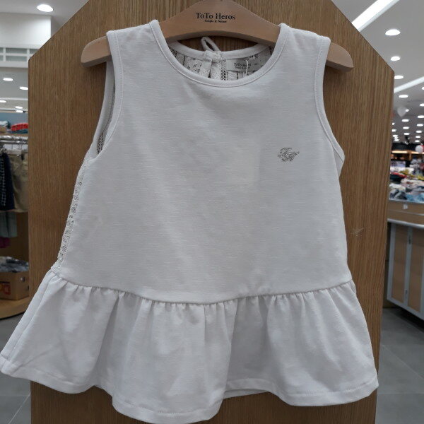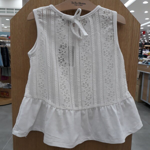 시원한 화이트컬러감에 뒤판은 레이스로 반전매력이 있는 티셔츠입니다