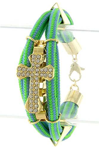 -. Title : KARMAS CANVAS CROSS STUD PATTERNED STRAP BRACELET