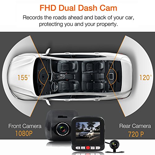 DUAL LENS DASH CAM for CAR: 1080P recording,170 degree front camera (3 Inches Display) + 120 degree weatherproof rear camera. You can have a more comprehensive picture of daily commutes and roadside events.