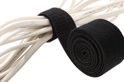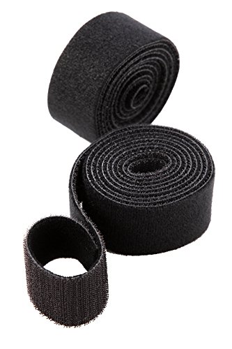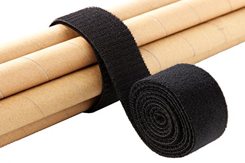 2-Roll Fastening Tape Hook Loop Strap – Nylon Hook and Loop Fasteners - Nylon Tie Down Straps Cable and Cord Organizer, Black, 1.5 Inches Wide, 5 Feet Length