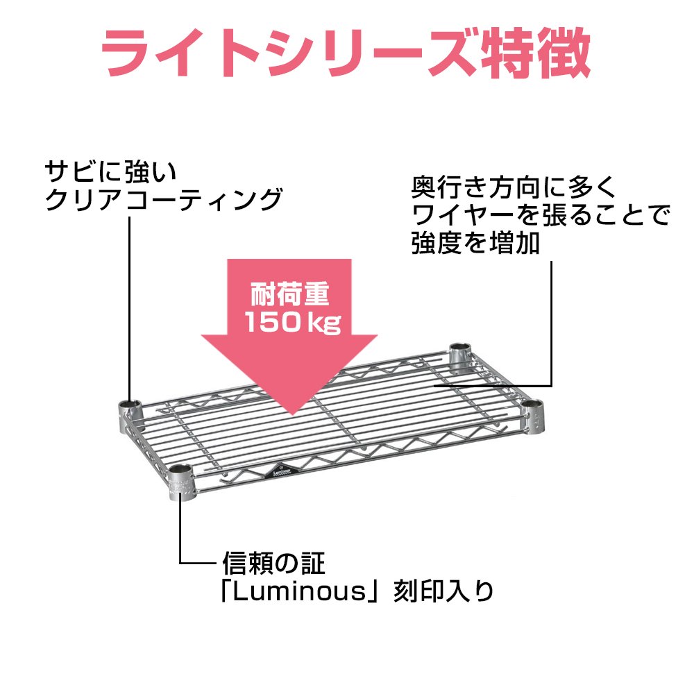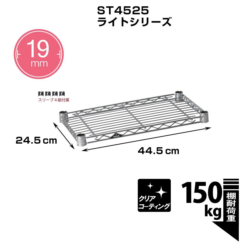 Luminous pole diameter 19mm parts for shelf plate steel shelf (load capacity 150kg) 1 sheet wire width direction (with sleeve) width 44.5 × depth 24.5cm ST4525
