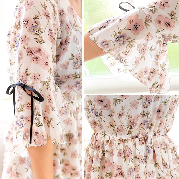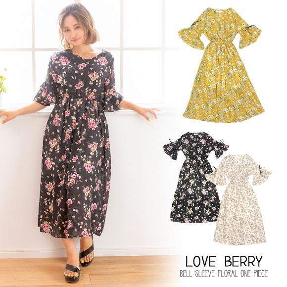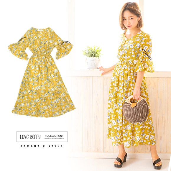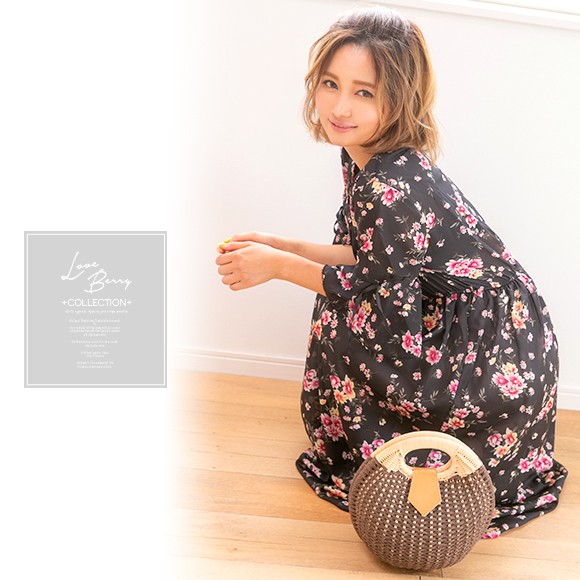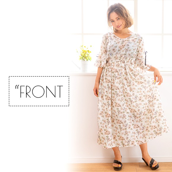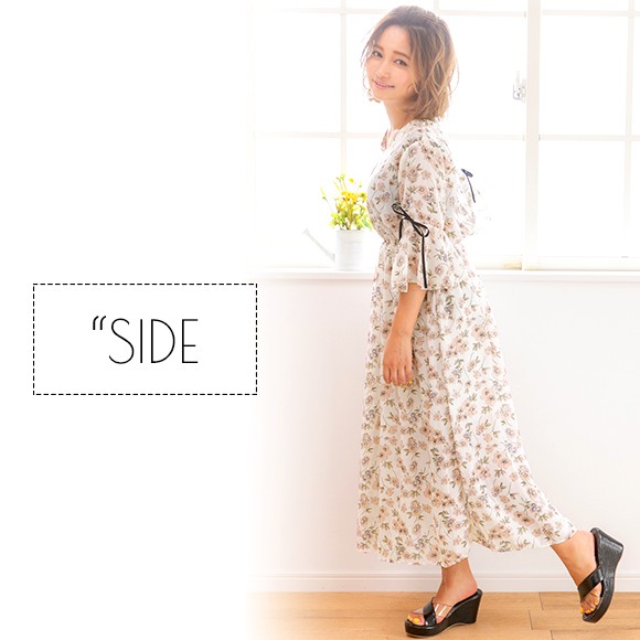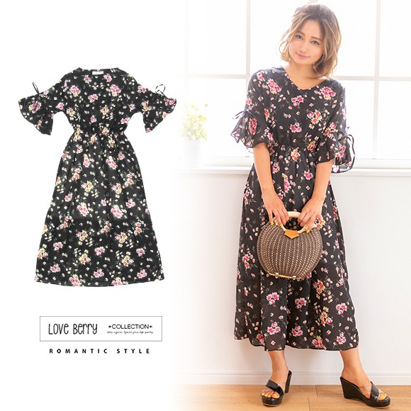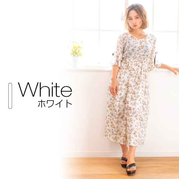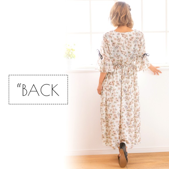 大きな花柄が散りばめられたシフォン素材のマキシ丈ワンピース☆