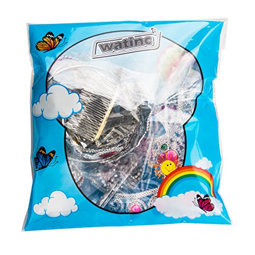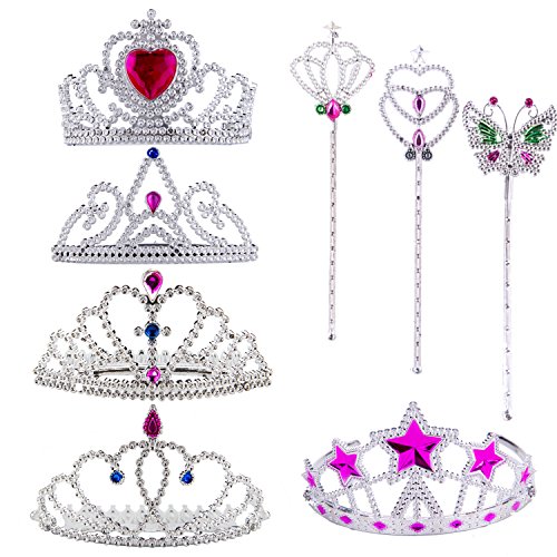 Variety: 5Pcs glitter Crowns, 4Pcs Necklaces, 3Pcs Wands, 12Pcs Rings, 24Pcs Earrings and 8Pcs Bracelets, total in 56Pack.