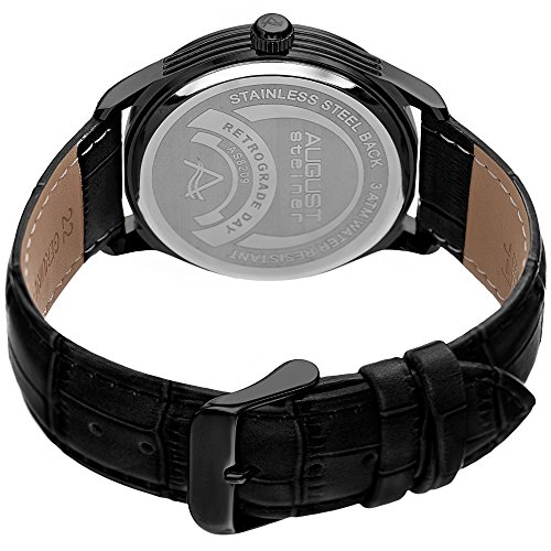 -. Title : August Steiner Men's 'Polished Finish Alloy Case' Quartz Stainless Steel and Leather Casual Watch, Color:Black (Model: AS8209BK)